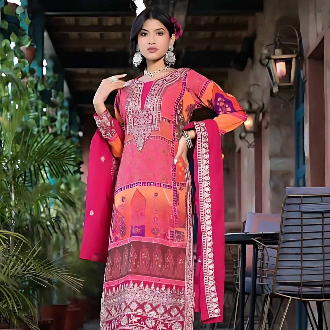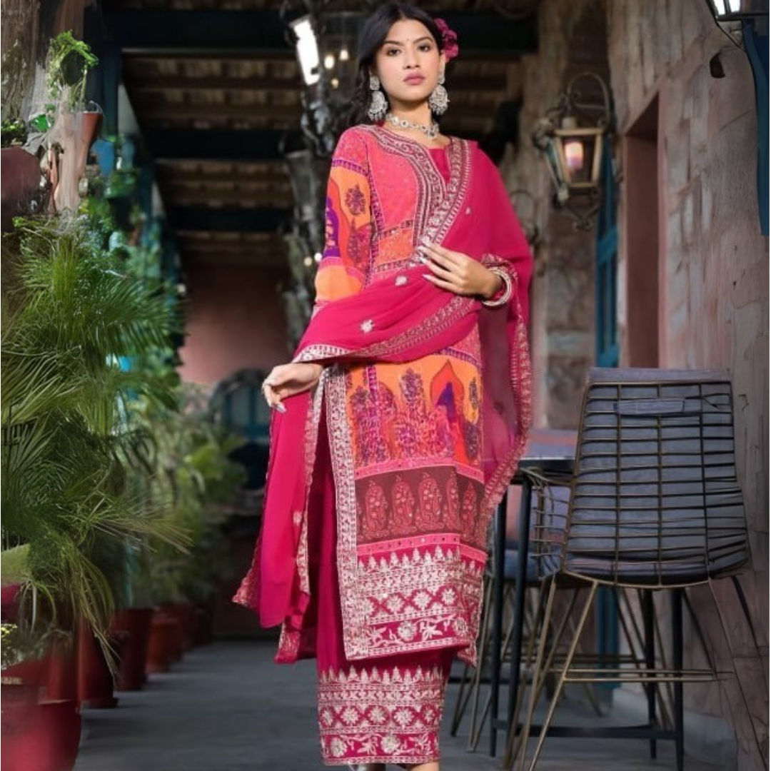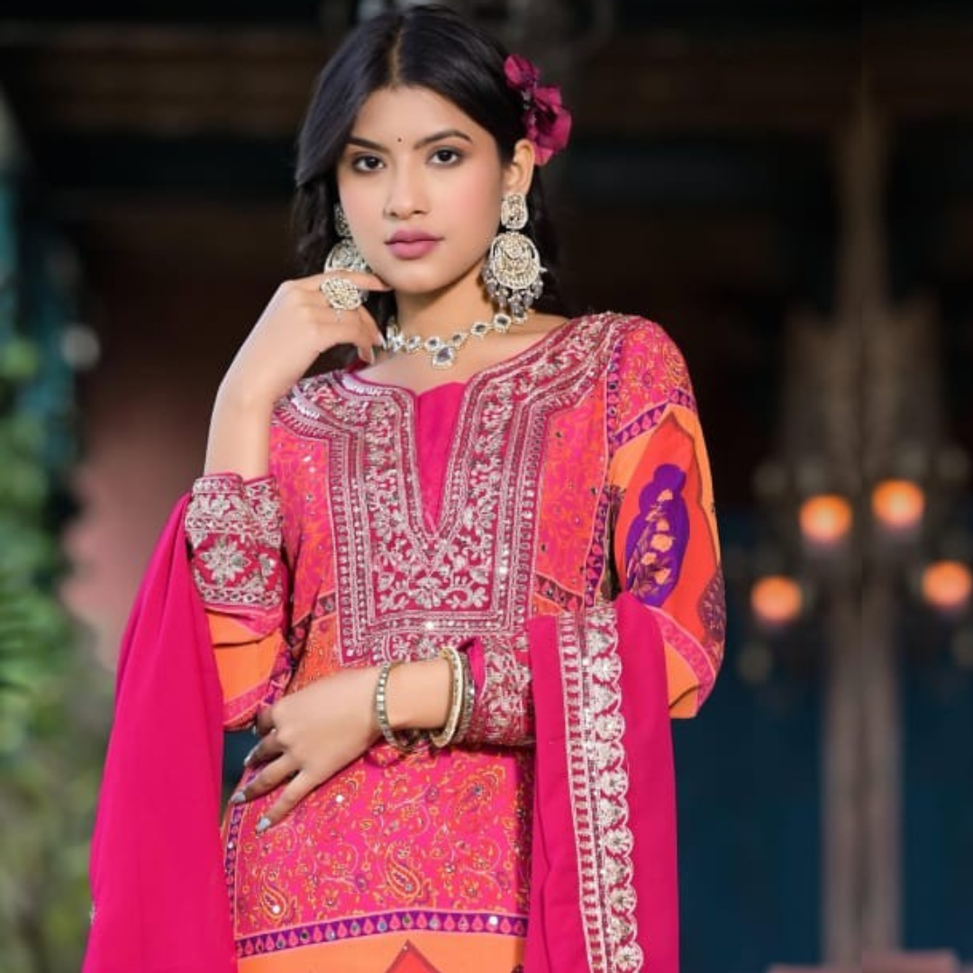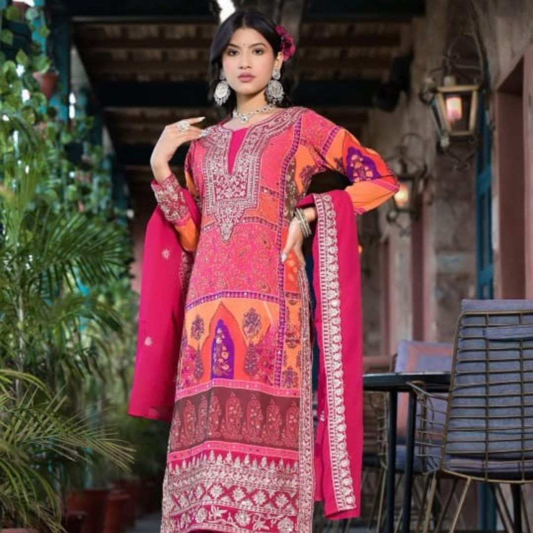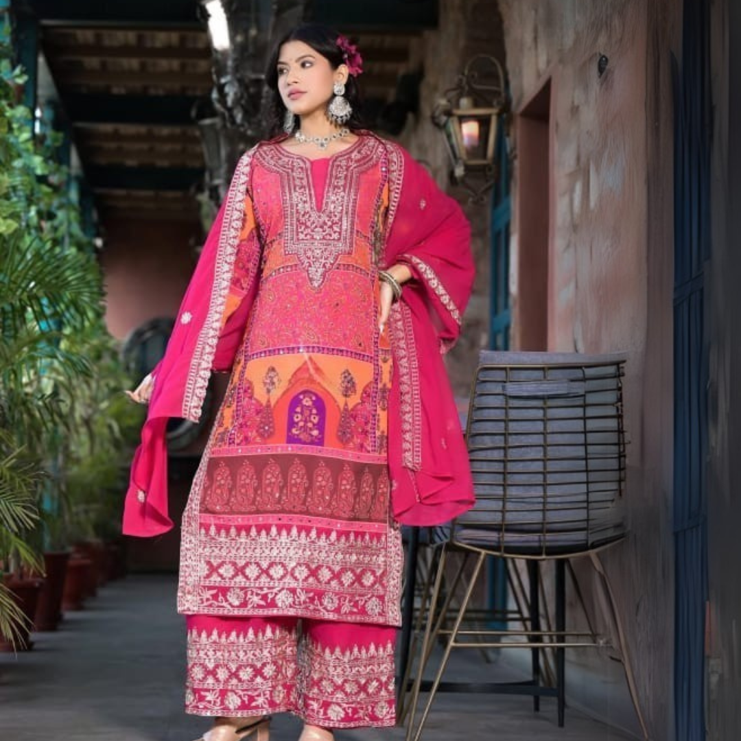 Noori women Embroidered SKD with mirror work